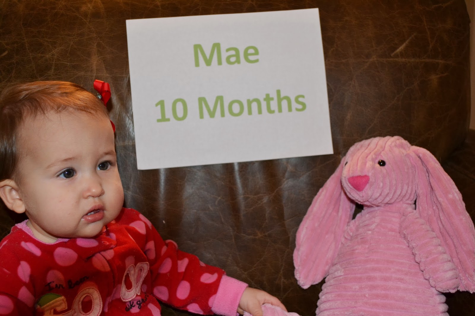 Mae is very active and moving all over the place! She still LOVES books and will sit still for anyone to read a book to her! She is walking all over the place while holding on to things and standing by herself for longer periods of time. We might have a walker on our hands by 11 months! We shall see!